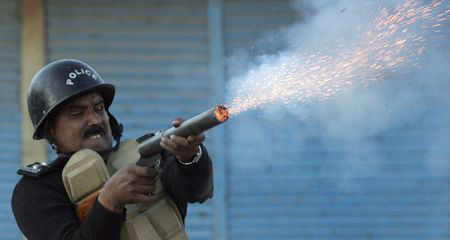 一种方法,是通过防暴枪,把催泪弹打出去(也有国家使用过枪榴弹,但作战效果不如防暴枪好)。通常,可以采取大仰角抛射的形式(也就是斜朝目标上方的天空开枪),通过火药气体把催泪弹打到骚乱者的面前或中间。而防暴枪的口径都较大(30-45毫米),所以足够容纳大剂量的催泪弹。